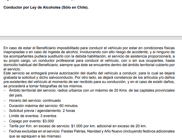 Conductor por Ley de AlcoholesPara Extramóvil Plus: 3 eventos Sin CopagoPara Móvil Clásico: 3 eventos Copago $3.000